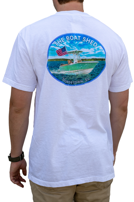 The Boat Shed Logo T-shirt is on a soft, 100% Cotton T-Shirt. Show off your Boat Shed pride with this Comfort color shirt!
